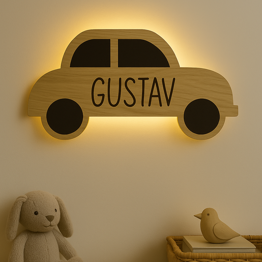 Utskuren barnlampa i ek – med tryckfunktion och laddningSkapa en lugn och trygg atmosfär i...