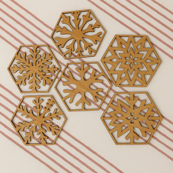 Gör julbordet extra mysigt med dessa eleganta grytunderlägg i ek! Varje underlägg är utskuret i ett unikt snöflingemönster som för in vinterstämningen direkt i ditt hem. Med sin naturliga yta i ek och sitt varma nordiska uttryck passar de perfekt i både modern och klassisk julinredning.