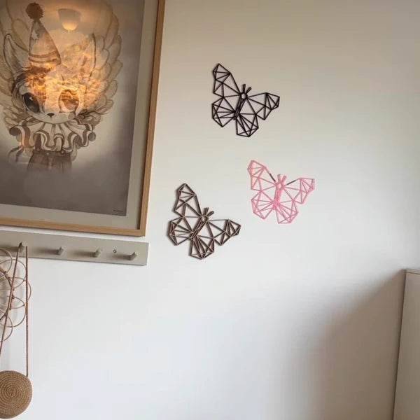 En elegant och stilren fjäril, som finns i antingen ljus ek eller den finaste rosa med glitter akryl. Den kommer att pryda alla tjejrum och kan matcha de flesta stilar i hemmet.