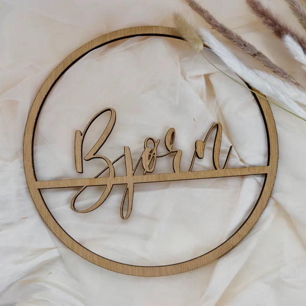 En stilren namnskylt för barnrummet eller dörren till barnrummet – enkel men elegant.