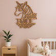 Skapa en sagolik stämning med denna vackra namnskylt med en enhörning! Skylten kan anpassas med ett namn och är utskuren i vacker ek, vilket ger en elegant och detaljrik design.