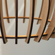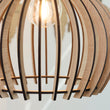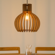 Denna moderna taklampa i trä kombinerar skandinavisk minimalism med naturlig värme. Lampans unika design med böjda lameller framhäver den vackra glödlampan och skapar ett behagligt, mjukt ljus över matbordet. Perfekt som blickfång i matsalen, vardagsrummet eller köket, där den tillför både trivsel och stil.