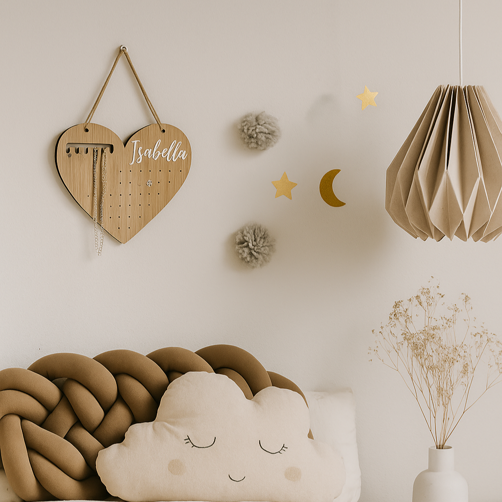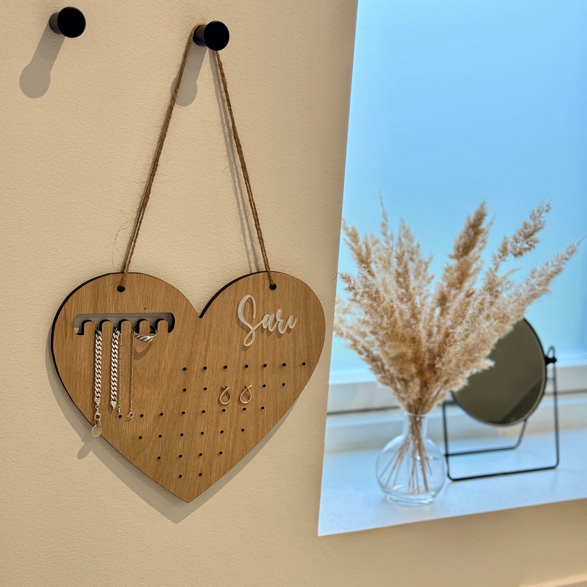 Smyckeshållare hjärta – Utskuret namn – 21x25 cm.