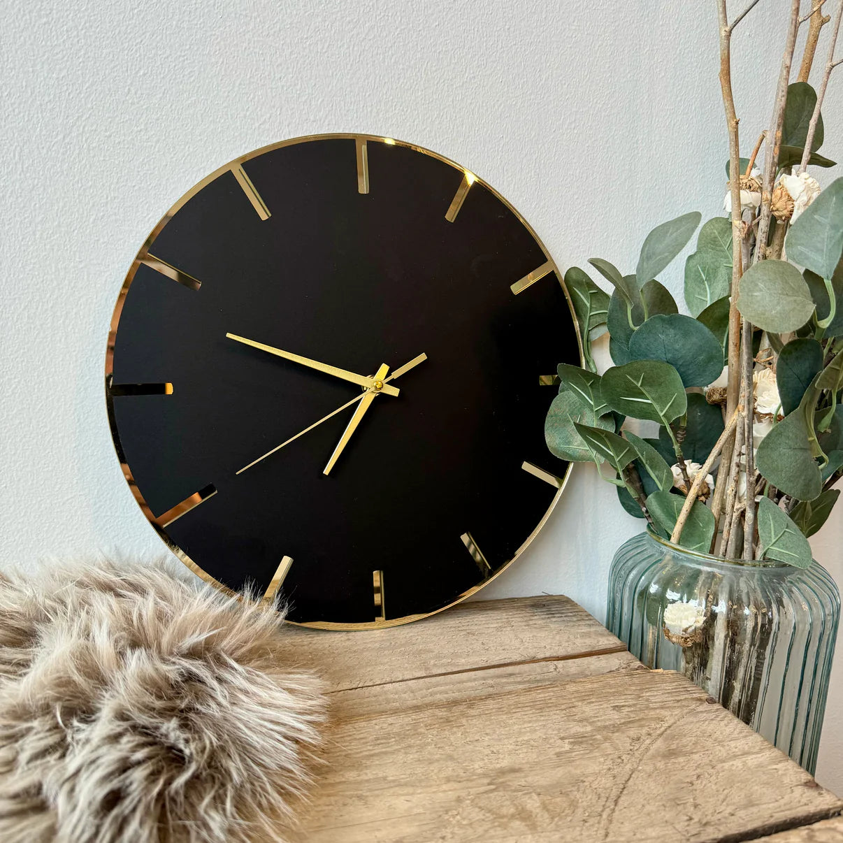Väggklocka - Matt svart & spegelakryl