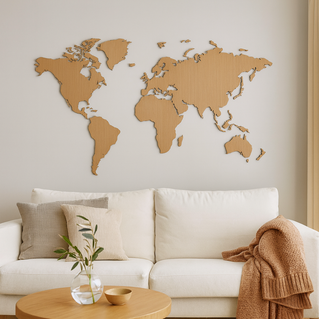 Det är ett dekorativt alternativ till affischer eller annan dekoration på väggarna i vardagsrummet, sovrummet eller köket. Med denna världskarta i trä får du inte en världskarta som alla andras, utan en världskarta i trä som kommer att sticka ut med sin fantastiska design och som säkert kommer att fånga dina gästers uppmärksamhet.