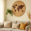 Upptäck världen från ditt eget hem med denna vackra världskarta tryckt i brunt på en elegant rund platta av ek. Kartan finns i flera storlekar: Ø40, Ø50, Ø60, Ø70 och Ø80 cm, så du kan hitta precis den storlek som passar perfekt på din vägg.